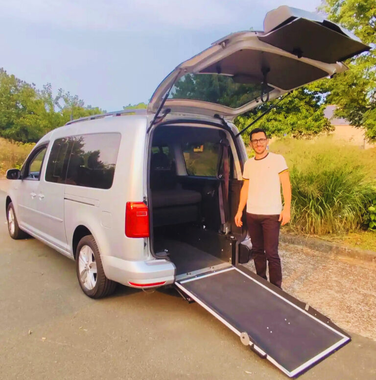 La société est équipé d’un véhicule TPMR Volkswagen Caddy maxi TPMR pouvant accueillir une 1 personne en fauteuil roulant et 4 passagers ou alors 6 passagers.